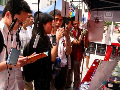 不一會整個會場就熱鬧起來了,在眾多的參展攤位中,以商科的攤位吸引了最多少男少女的眼光