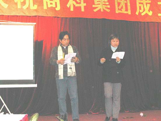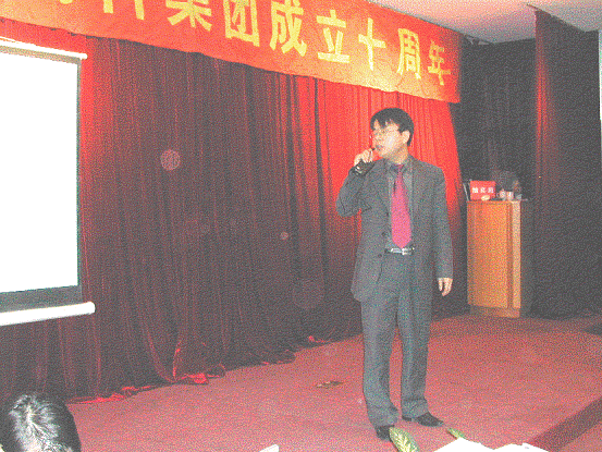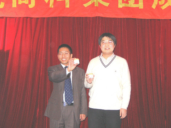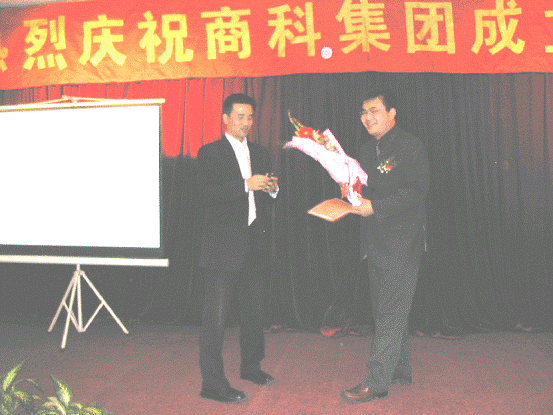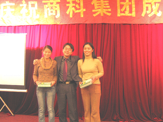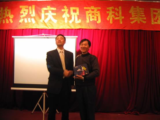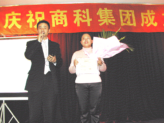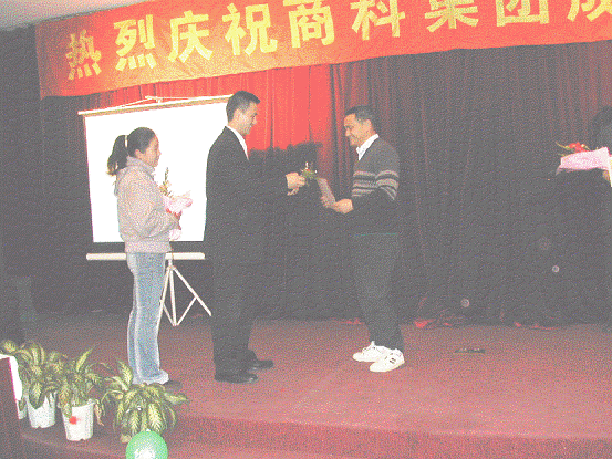 上海分公司員工呂家起正在接受孫經(jīng)理頒發(fā)的“銷售標兵”這個榮譽稱號