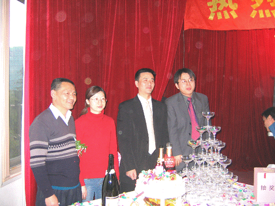 經(jīng)理、副經(jīng)理與優(yōu)秀員工共同開啟“歡慶之酒”