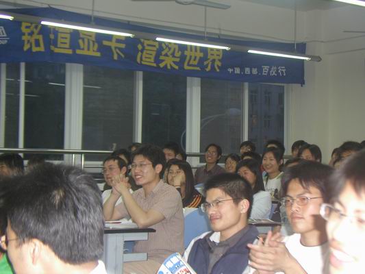 從這站可以看到,同樣是我們的臺電產品深受學生的歡迎,也有銷售了幾臺高端MP3機型。最為熱鬧的是晚上的講坐,參于人員特別多,多媒體教室坐的爆滿,并有很多臺電前客戶和學生FANS 同臺交流,這站是氣最旺的一站。