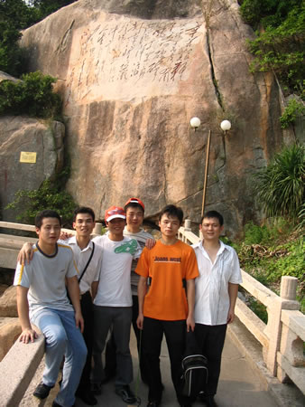 歡呼聲中我們踏上了十一之旅,來到富有豐富人文、歷史景觀的外伶仃島,外伶仃島離香港長洲島只有6海里,主峰伶仃峰高達311.8米,是萬山群島最高峰。站在伶仃峰可清楚的觀望香港的景色(如太平山、青馬大橋等香江景物)。天氣晴朗不起霧的時侯,清晨在山頂等候太陽從大海的地平線上跳出,冉冉升起,整個洋面一片金黃,霞光萬丈,美不勝收,真是一大奇景可惜我們這次沒有看到此景。。!伶仃洋上最有影響,千古傳誦的是文天祥“人生自古誰無死、留取丹心照汗青”這一千古絕唱。這是毛澤東主席生前手書的文天祥《過伶仃洋》詩的石刻。