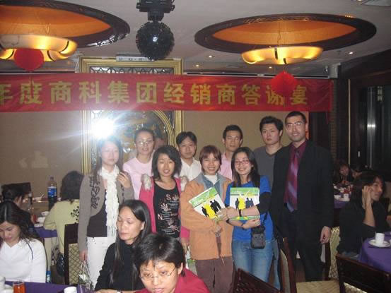 2006年1月17日,商科集團(tuán)廣州分公司與100多位經(jīng)銷商濟(jì)濟(jì)一堂,舉行了經(jīng)銷商答謝宴,感謝過(guò)去一年各位經(jīng)銷商對(duì)商科集團(tuán)的支持,當(dāng)晚還頒發(fā)了“年度個(gè)人貢獻(xiàn)獎(jiǎng)”,“年度公司貢獻(xiàn)獎(jiǎng)”,“年度優(yōu)秀代理商獎(jiǎng)”,獎(jiǎng)品和獎(jiǎng)金豐厚,氣氛熱烈,讓我們一起看看當(dāng)晚的盛況。