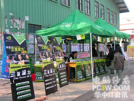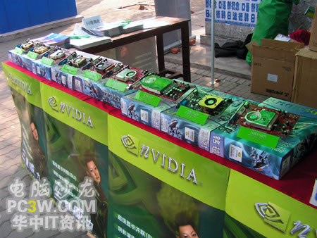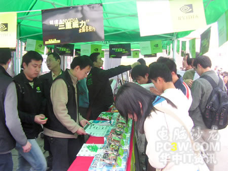 校園行也力圖讓廣大學(xué)生真實(shí)的體驗(yàn)來自NVIDIA的強(qiáng)大新技術(shù)所帶來的震撼效果,特別是SM3.0、HDR以及SLI這三大顯示技術(shù)。產(chǎn)品展臺(tái)上擺滿了各款銘瑄支持這“三重威力”的顯卡產(chǎn)品。從入門級(jí)的6200TC直到最近被各大IT媒體所熱炒的6800GS,展示產(chǎn)品可以說是琳瑯滿目。