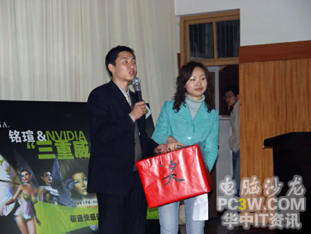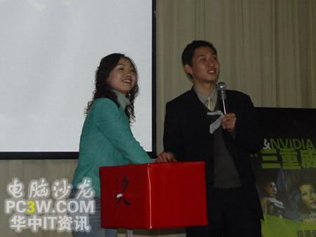 接下來,商科集團(tuán)武漢天行電腦市場(chǎng)部涂嵐女士抽出了今天晚上活動(dòng)的二等獎(jiǎng),臺(tái)電MP3。