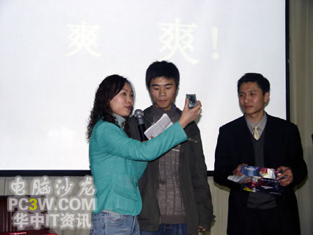 當(dāng)這位帥哥幸運(yùn)的被抽中并上臺(tái)領(lǐng)獎(jiǎng)的時(shí)候,引起臺(tái)下女生的一片嘆息聲哦。似乎有不少M(fèi)M對(duì)這款MP3情有獨(dú)鐘嘛!