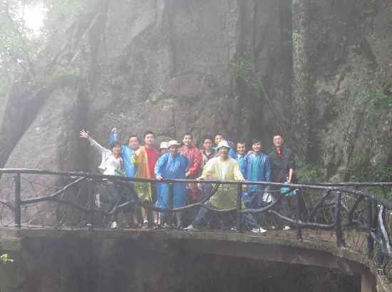 結(jié)束語:雖然本次旅游的時(shí)間由于客觀原因推遲了一些, 途中還下了點(diǎn)小雨,但是這些都沒有影響到大家的心情,也許穿著雨衣爬山對于很多同事來說是人生的另一番體驗(yàn),額頭上除了汗水還有雨水,溫溫的汗水混合涼涼的雨水,給各自帶來的靈感,只有自己才知道。下山后,晴朗的天氣,依然給了大家一個(gè)保持良好心情的理由。人生的旅途,不會(huì)一帆風(fēng)順,也總是要經(jīng)歷風(fēng)雨之后才能見晴空,大家在經(jīng)歷風(fēng)雨的時(shí)候,請一定要記住,晴空就在前方,祝福大家。
