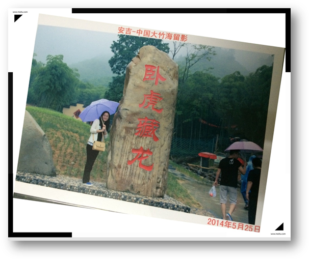 旅行的第二天,我們?cè)趽?jù)說(shuō)有大雨的天氣中開(kāi)始了我們的行程。一路上,雨,忽停忽下,有時(shí)還傾盆而下連綿不斷。雖然天公不作美,但我們游玩的心情不減反增,相信在雨中更能體會(huì)到大自然的樂(lè)趣,為此,我們便來(lái)到了電影《一代宗師》的拍攝地點(diǎn)之一------大竹海。既然是這么有意義的地方,當(dāng)然少不了來(lái)一張“全家福”咯。