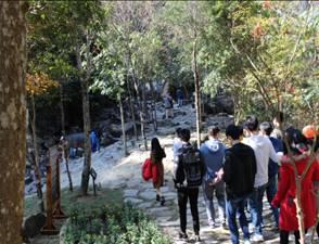 下午我們來到了享有“南國仙山”美譽的姑婆山,姑婆山分布有仙姑寨、仙姑大草坪、仙姑瀑布、天堂頂、九天峽谷、情人林、古窯沖和方家茶園八大主題景區(qū),內(nèi)含茶壽石、聚寶盆、仙人指路、八步仙蹤等88處神奇景觀,久聞四季宜人,萬物共榮。森林覆蓋率高達(dá)99.55%,負(fù)離子含量高達(dá)15萬個/cm³,我們吸氧來啦!