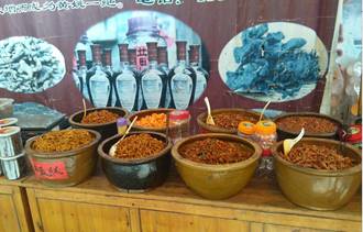 小鎮(zhèn)的街道建筑古色古香,青灰石板小路。可能是因為我們白天到,游客很少,目光所到大多是年邁的老人,少量的商鋪開著門,賣著醬菜,糯米酒、桂花香、青梅酒等釀酒,很多酒吧大門緊閉。