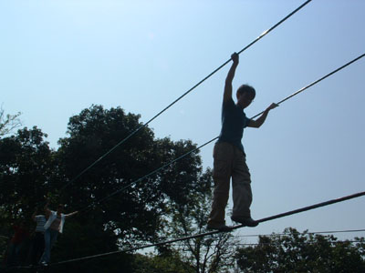 來個“金雞獨立”架勢,挑戰自己的勇氣。