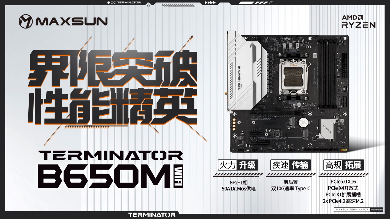 花入門級的價格,享旗艦級的體驗 —— 銘瑄Terminator B650M WIFI6 主板高度契合 “該省省、該花花” 的裝機哲學,無論是AMD銳龍7000/8000/9000系列處理器的新用戶,還是想要低成本升級的老平臺玩家,這款集兼容性、性能、拓展性與顏值于一身的主板,正是年末裝機的黃金優(yōu)選。現(xiàn)在入手正當時,閉眼沖不踩坑!