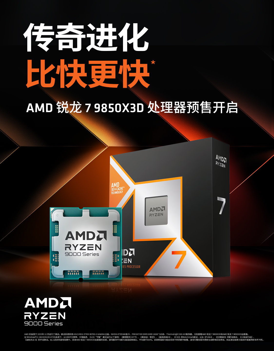 近日,AMD 重磅推出全新力作 —— AMD銳龍 7 9850X3D 處理器,現已在京東平臺開啟預售。這款基于先進的 “Zen 5” 架構打造的處理器,搭載第二代 AMD 3D V-Cache 技術,配備8 顆高性能核心與 16 線程的硬核配置,最高加速時鐘頻率可達 5.6 GHz,更擁有高達 104MB(L2+L3)的總緩存容量,讓游戲加載速度、畫面流暢度與多任務處理效率實現質的飛躍。更貼心的是,其 120W TDP 完美適配主流風冷方案,且兼容現有 AM5 平臺,老玩家無需更換平臺即可直接升級,輕松解鎖高性能體驗,實現低成本投入、高收益體驗。
