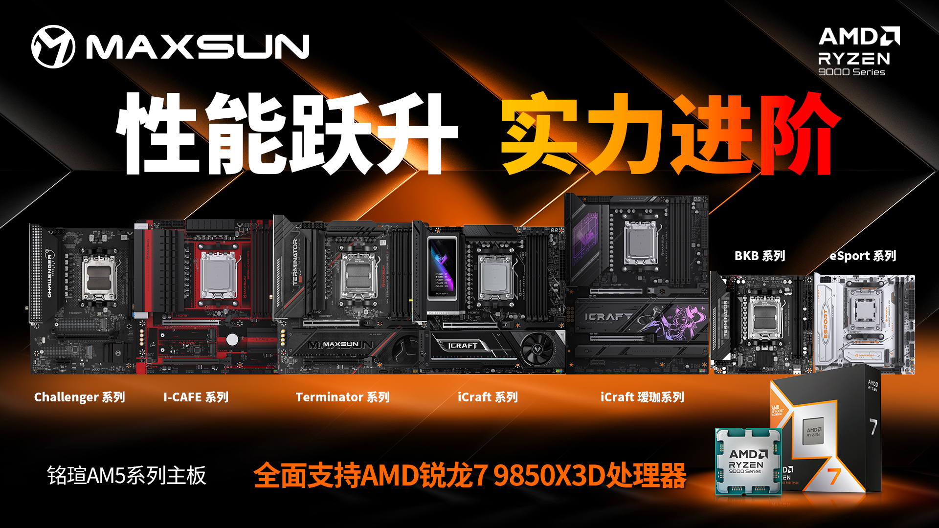 作為 AMD的核心合作伙伴,銘瑄 AM5 全系列主板全面支持AMD銳龍 7 9850X3D 處理器,助力玩家暢玩游戲,續寫性能傳奇。在眾多優秀產品中,銘瑄iCraft B850 AIGA 與 銘瑄Terminator B850M PRO II WIFI7 兩款明星主板格外引人注目。它們分別以二次元顏值旗艦與高性價比戰力標桿的鮮明定位,為不同需求的玩家量身打造適配 AMD 銳龍 7 9850X3D 處理器的黃金方案,讓每一分性能潛力都能盡情釋放。